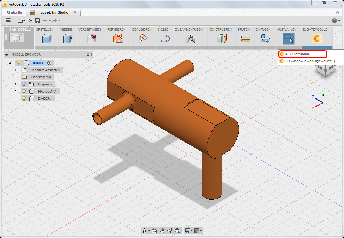 Erweitern Sie das MenüAdd-Ins und wählen Sie In CFD simulieren.