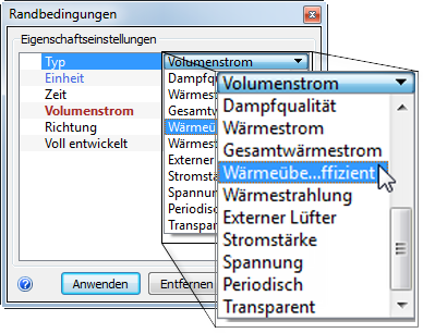 10. Wählen Sie Wärmeübergangskoeffizient in der Zeile Typ.