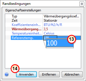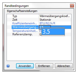 12. Geben Sie in der Zeile Wärmeübergangskoeffizient den Wert 3.5 ein.