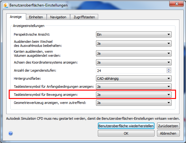 Beenden Sie Autodesk® CFD. Die Änderung wird beim nächsten Starten von Autodesk® CFD wirksam.