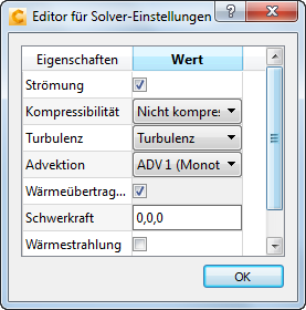 Stellen Sie sicher, dass "Strömung" und "Wärmeübertragung" aktiviert sind, und klicken Sie auf "OK":