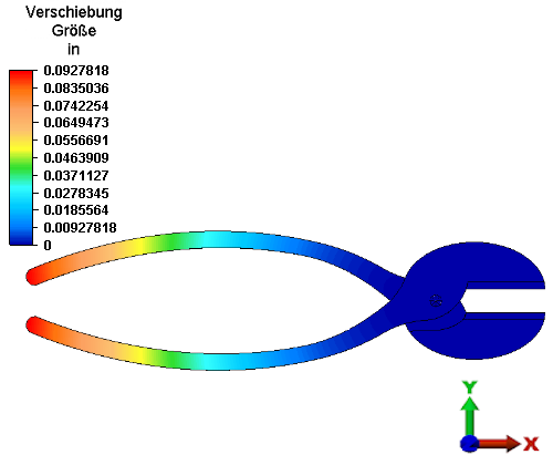 Nach der Volumenvernetzung erfolgt die Analyse und das Modell wird in der Ergebnisanzeige angezeigt, wie unten abgebildet. Vorgabemäßig wird anfangs die Verschiebungsgröße angezeigt.
