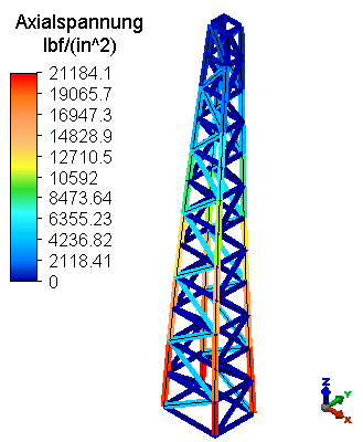 Die maximale resultierende axiale Spannung liegt etwas unter 21,200 psi, und das Modell wird wie in der folgenden Abbildung dargestellt.
