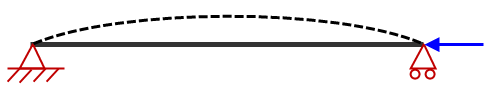 (b) In FEM erstelltes Balkenmodell. Die Lastexzentrizität hat zur Folge, dass ein Moment auf den Knoten angewendet wird. Aufgrund der Beschaffenheit von Balkenelementen und der kritischen Knicklast wirkt sich das Moment nicht auf die Ergebnisse aus. In diesem Beispiel wird der falsche Elementtyp verwendet.