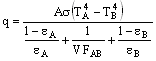 Wenn T A und T B die Temperaturen von Oberfläche A und Oberfläche B sind (in absoluten Temperaturen), sind ε A und ε B die Emissionsvermögen von Oberfläche A und Oberfläche B, und VF AB ist der Ansichtsfaktor zwischen den beiden Oberflächen.