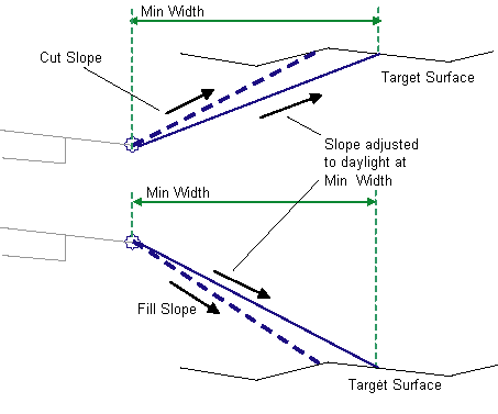 May be used to override the fixed Min Width and tie the minimum width to an offset alignment. The following object types can be used as targets for specifying the width: alignments, polylines, feature lines, or survey figures. |