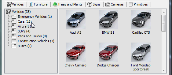 With Civil View, you can add a random assortment of cars to your model, and animate the way they travel along the roadway.
