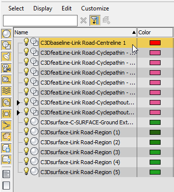 - On the Scene Explorer, select the centerline of the road, C3Dbaseline-Link Road-Centreline 1.