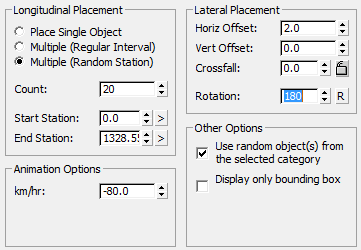- Longitudinal Placement group: Choose Multiple (Random Station), and make sure that Count is set to the default value of 20.