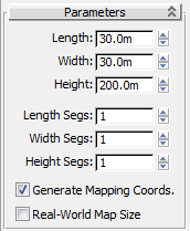 Parameters rollout, set the parameters of the box as follows: - Length = 30.0m