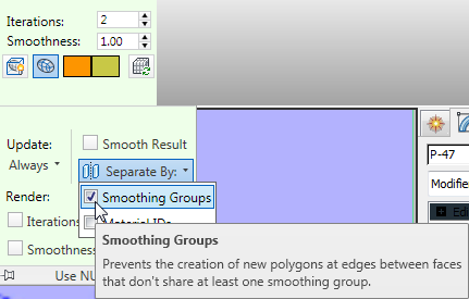 Note: You used this value for the engine cowl as well, but remember that the P-47 fuselage and the Canopy are two different objects, so the smoothing-group values don’t overlap.
