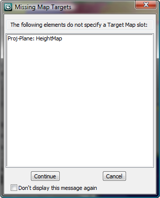 Click Continue to dismiss the Missing Map Targets message box. We deliberately left the height map unassigned, because in the next lesson, you will assign it separately.