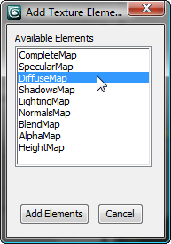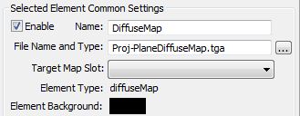 Selected Element Common Settings group. The file name of the diffuse map to be created displays in the File Name and Type field.