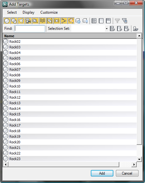 The scene consists of a source object, a tile of spheres sculpted to resemble rocks set in mortar. Directly above is the target object, a simple two-dimensional plane.