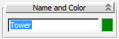 - Select the Box01 object and on the Name And Color rollout, rename it Tower.