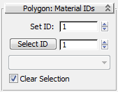 - On the Modify panel, scroll down to the Polygon: Material IDs rollout, and verify that Set ID has a value of 1.