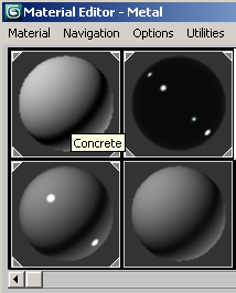 - In the sample slots, locate the Concrete material. Click the slot to make the material active, and then click