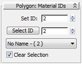 - On the Polygon: Material IDs rollout, click the Set ID spinner up-arrow once, to change the value to 2.