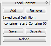 The box returns to its previous status, with one difference: On the Local Content rollout, the Saved Local Definition field contains the name of the saved container. When a container has a local definition, that effectively means you’re the container’s owner, although it doesn’t necessarily mean you have full control of its contents; this will become clearer later in the tutorial.