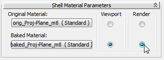 As the rollout shows, the Shell material contains two types of material: the originally assigned plane material, which displays only when rendered, and the baked material obtained from the source object, which displays only in viewports.