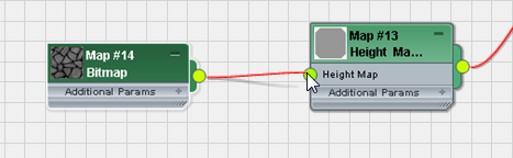 - Wire the new Bitmap node to the Height Map component of the Height Map Displacement node.