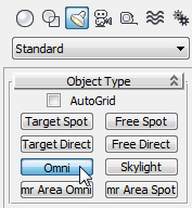 (Lights). Choose Standard from the drop-down list, then click Omni to activate it.