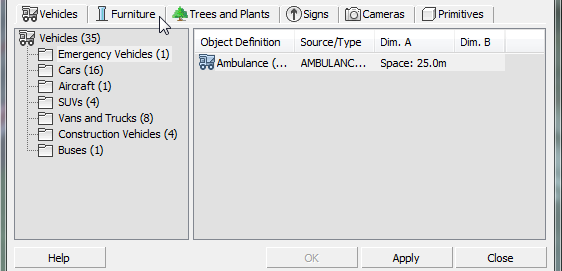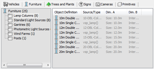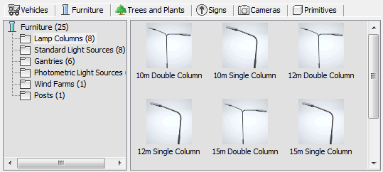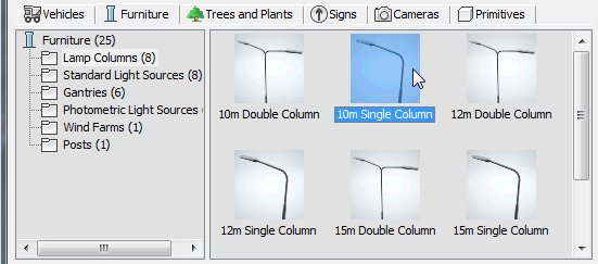 In this lesson, you add street furniture to the road. These objects are in the Civil View category of placed objects.