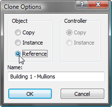 If the mullions object were cloned as an instance, it would be completely dependent on the original, and vice versa: Any subsequent edits made to either object would affect the other.