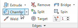 - On the first control of the caddy for the Chamfer tool, Edge Chamfer Amount, change the value to 0 2/32, and then click