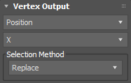 - Sets the output to the Vertex Data channel, storing the data per vertex instead of within a map channel (which pertains only to mesh faces).