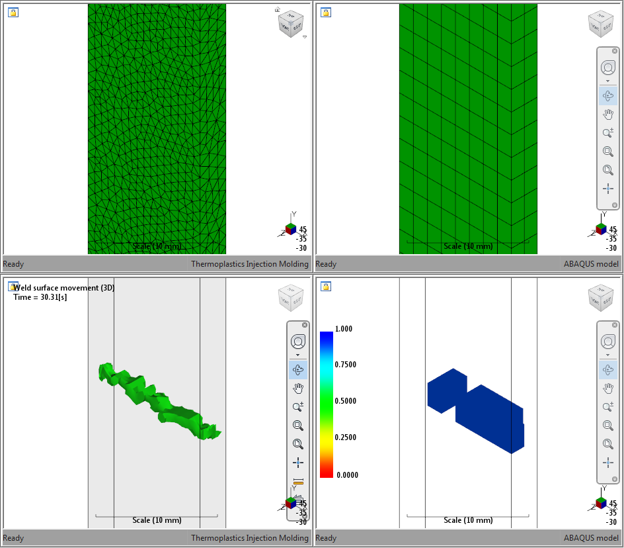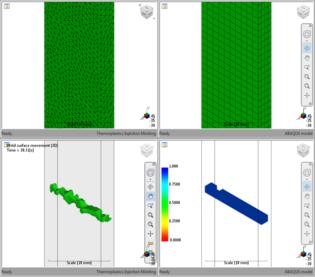 We can clearly see that as the mesh of the structural model is refined, it begins to take on the shape of the weld surface as displayed in the Moldflow model. As a best practice, we recommend your structural mesh density is 1:1 or finer when compared to the Moldflow mesh.