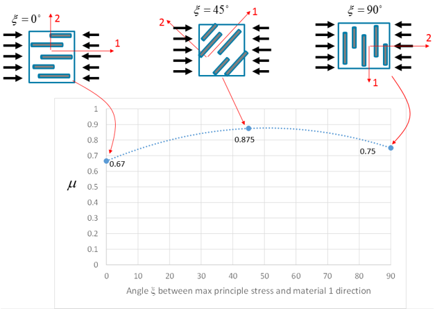 The image below shows an example of how μ is dependent on the direction of the principal compressive stress relative to the principal fiber orientation.