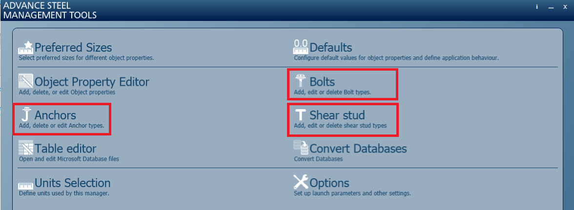 Open MT 2015 and go to Bolts (or Anchors / Shear studs)
