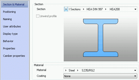 Example: Create straight beams HEA 200 x 2500 mm long