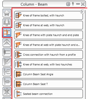 The tools for eaves connections are grouped in the Column - Beam category of the Connection vault.