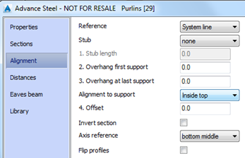 - Modify the purlin macro with the right section size and alignment. To position the beam system as floor beams set Alignment to support on Inside top.
