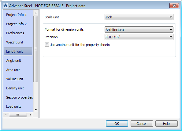 - Set the units as required, in the Project data dialog: