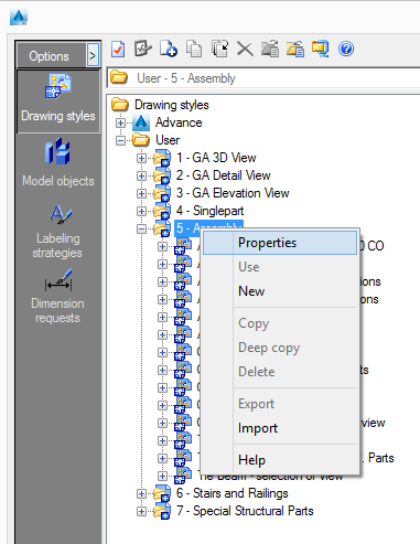 The Drawing Style Manager user interface reflects the structure of a drawing style.