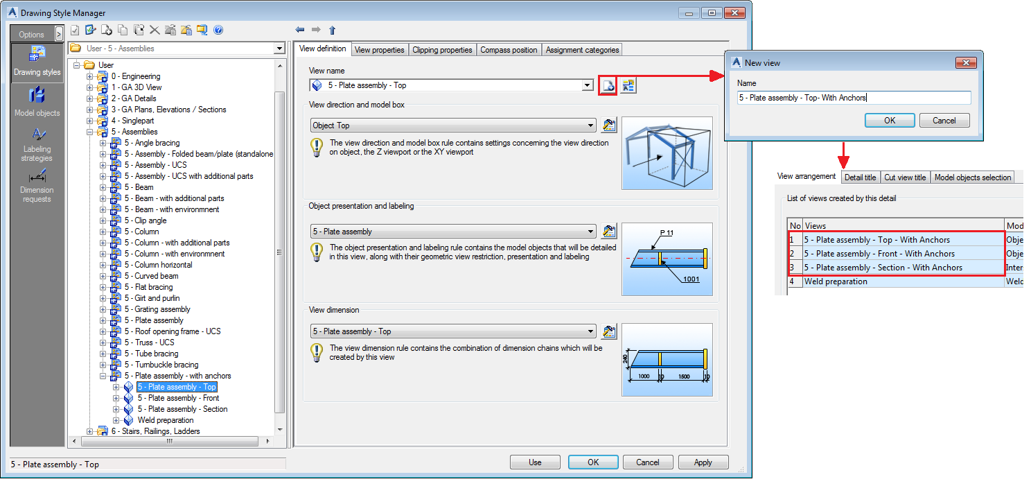 Following the steps above, the drawing style displaying anchors will be part of the user detailing database. It is created with only a small number of copies (5 in this case), with everything else being reused. This allows for a small database and avoids introducing unnecessary duplicates.