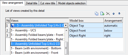 For each view, a predefined model box and arrangement may be selected. View properties are displayed by double-clicking a view in the table. For more information, refer to