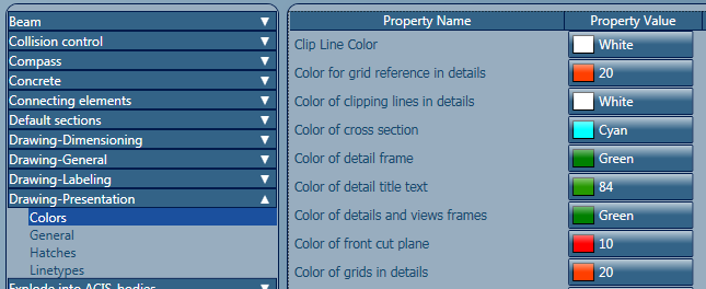 Additionally, you can override those color settings and force a color to be used for a specific object/line type. This is done with the automatic detailing mechanism (Drawing Style).