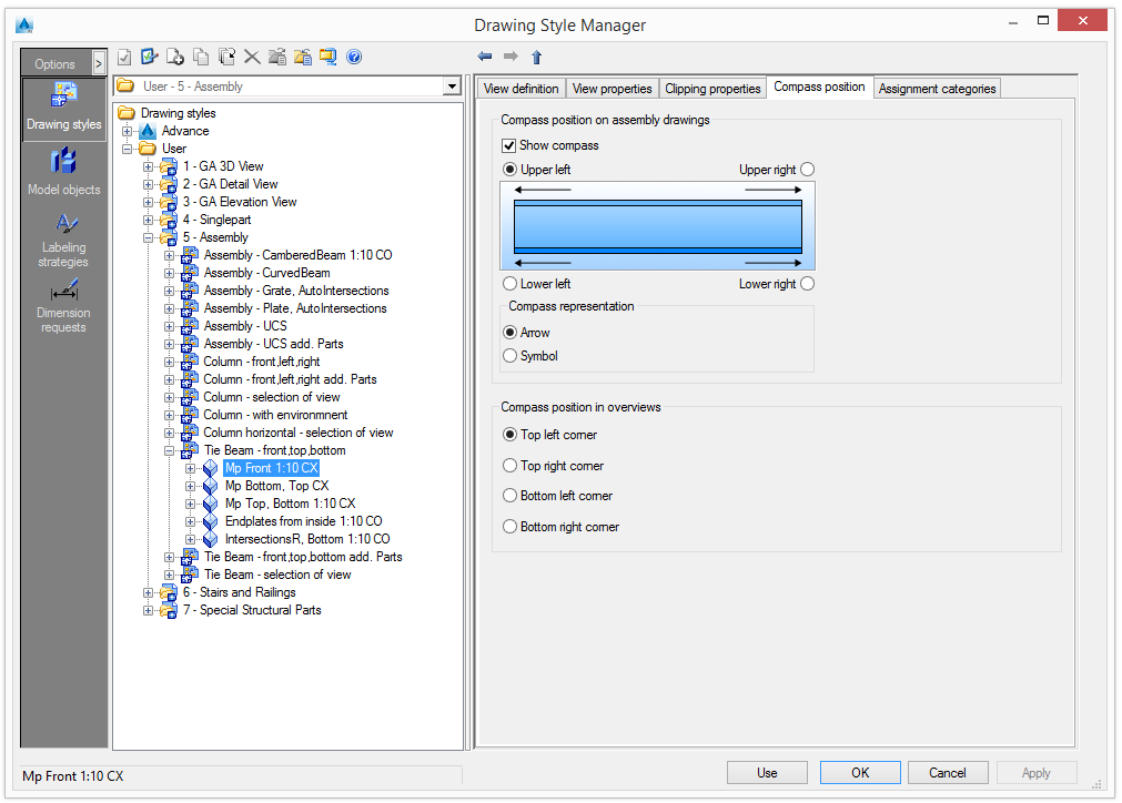 To display the compass in the drawings, check Show compass in the "View location" area.