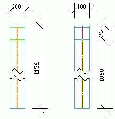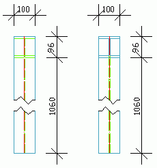 The following example illustrates the behavior of setting Point position on the object and on the main part for a beam with holes and two attached plates in the front view of a beam.