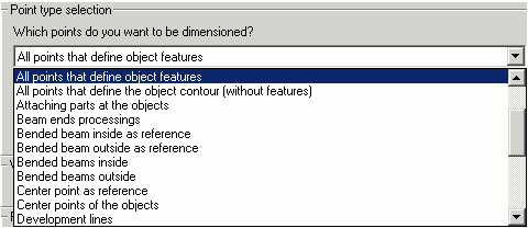 A dimension point selection rule contains settings for model objects and geometric restriction, point type, position on object or on main part.