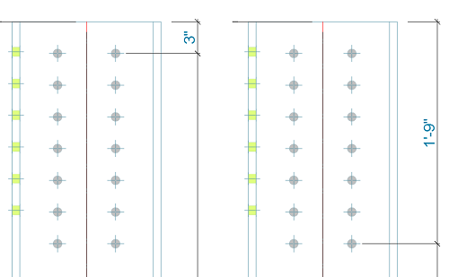 - If one of the selected holes is the first or the last hole, then during update Advance Steel will remove all the intermediary dimensions.