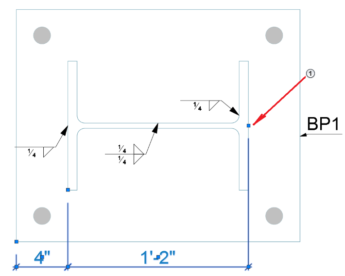 | Beam flange mid-point | The dimension point jumped to a valid smart dimension |