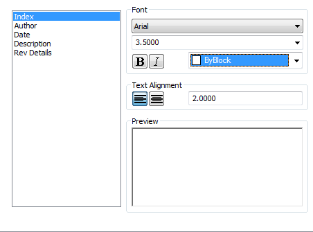 Allows setting up the text format for the heading and for the text that is displayed in the revision table.