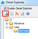 - In the right side of the Detail explode dialog box, in the User group, select the profile in which you want to add new explode settings.