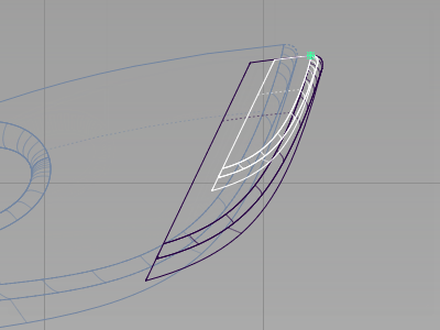 Next move the pivot point to the end of the surfaces using curve snapping. Use the pivot point to control the scaling of the surfaces.