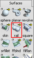 The Rail surface defaults to a birail, which has two path curves. Now change the rail surface settings to create a monorail, with only one path curve.